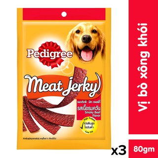 Bộ 3 thức ăn vặt cho chó Pedigree Meat Jerky vị bò xông khói 80g