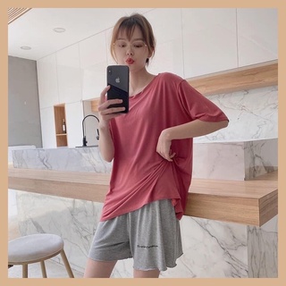 Sét đồ bộ bầu BÒ SỮA tay lỡ quần bầu cộc có chun chỉnh- Bộ mặc nhà form rộng rãi BC840