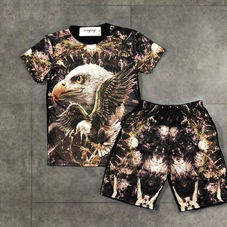 Bộ Quần Áo Thun Nam-Bộ Nam Hè Không Cổ Bộ Đầu Lâu Chất Thun Cotton In Hình 3D Co Dãn DH7450
