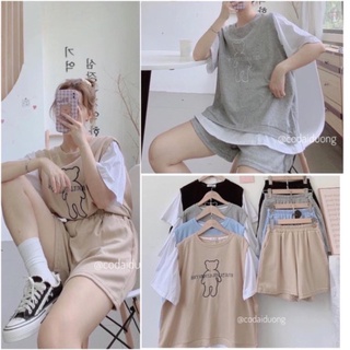 Set Đồ Bộ Nữ Áo Thun Phom Rộng Phối Quần Đùi Leggin Cực Kỳ Thoải Mái