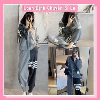Đồ bộ nữ len tăm phối sọc thể thao LD002