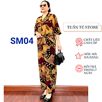 Bộ sơ mi nữ trung niên Áo có cổ và khuy cài chất liệu lụa hàn châu cao cấp mềm mát không nhăn xù khi giặt - Tuấn Tú Store 68