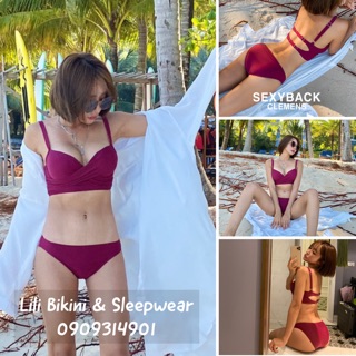 Bikini đỏ mận rượu vang đỏ màu hot Hàn Quốc tôn da trắng, tôn dáng, đồ bơi hai mảnh chéo ngực sexy
