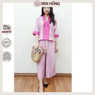 ♥️❤️Quần Áo Lam Phật Tử cao cấp màu hồng dành cho nữ hà nội hcm An252 vải đũi phối tơ tằm hàng thiết kế
