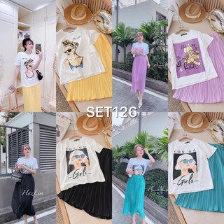 SET ÁO PHÔNG MIX CHÂN VÁY XẾP LY DÀI CỰC XINH NỮ SET126