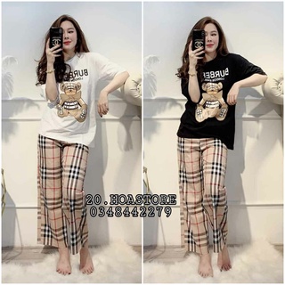 SET BỘ ĐỒ THÊU HÌNH GẤU KẺ BBR ÁO CỘC QUẦN DÀI