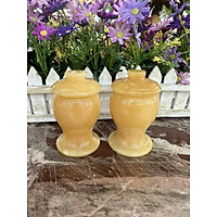 Cặp hũ đựng muối, gạo thờ cúng đặt bàn thờ ông thần tài thổ địa đá cẩm thạch trắng