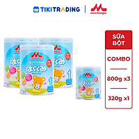 Combo 3 lon Sữa Morinaga số 1 Hagukumi 850g + 1 lon sữa Morinaga số 2 320gr