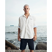 Evisu kuro thêu full chữ chất áo sơ mi nam tay dài kaki trắng dày dặn co dãn nhẹ thêu nét chính hãng K3 STORE