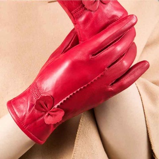 Găng Tay Da Nữ Cảm Ứng Đính Quả Bông