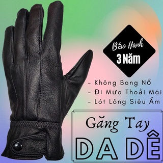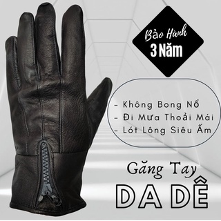 Găng Tay Da Dê 1 Khuy Nam Màu Đen - Bảo Hành Da Thật 3 Năm - Không Bong Nổ - Đi Mưa Thoải Mái, Dễ Lái Xe