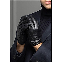 Găng Tay Da Cừu Nam TRAZ 1 Khuy Màu Đen Mỏng Nhẹ Đi Mưa, Dễ Lái Xe Không Bong Nổ Bảo Hành Da Thật 3 Năm