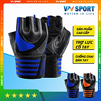 Găng Tay tập Gym Có dây Quấn Trợ Lực Cổ Tay VNS002 (WEIGHT LIFTING GLOVES), Găng Tay Tập Gym Cao Cấp Có Phủ Da Trên Mu bàn Tay, Chống Chai Sần Lòng Bàn Tay, Bảo Vệ Khớp Cổ Tay
