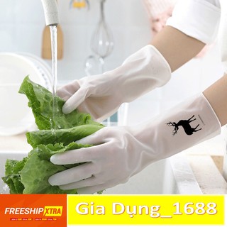 Găng Tay Cao Su Lót Nỉ Loại Dài Có Dây Chun - Găng Tay Rửa Bát