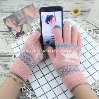 Găng tay len cảm ứng thêu hình tuần lộc