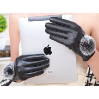 Găng Tay Da Nữ Cảm Ứng Đính Quả Bông