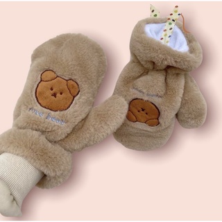 Găng tay gấu bông chất lông cừu cực ấm, họa tiết gấu thêu