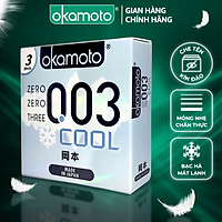 Bao Cao Su Okamoto 0.03 Cool Siêu mỏng Bóng Láng Mát lạnh Hộp 3 Cái