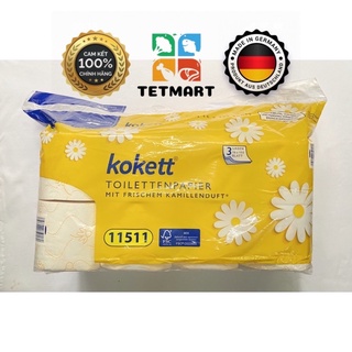 Bịch 16 cuộn Giấy vệ sinh cao cấp đa năng hương thơm nước hoa cúc dễ chịu, hiệu Kokett chuẩn hàng Đức, 3 lớp dai dày dặn