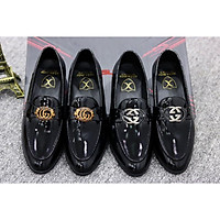 Giày Sục Nam Da Bóng Có Đai Vàng Kết Hợp Da Lộn Mã L194 Màu Đen