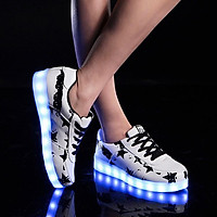 (hàng có sẵn) Giày đèn Led 7 màu Họa tiết Vẽ Trắng/Đen độc đáo cho sự kiện,lễ hội,biểu diễn phát sáng 8 chế độ rực rỡ