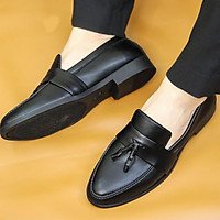 Giầy tây giày lười nam hàn quốc đen bóng cách tân