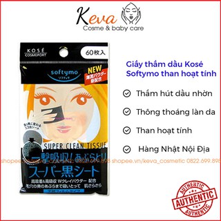 Giấy thấm dầu Kose Softymo than hoạt tính (60 tờ) - Keva