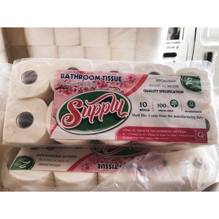 giấy vệ sinh cuộn nhỏ hiệu supply có lõi 10 cuộn ( 1 lốc như hình )