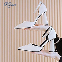 Giày cao gót mũi nhọn đính dây ngọc xinh xắn gót đũa nhỏ - 7P