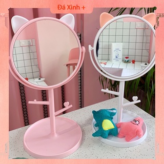 Gương Trang Điểm Để Bàn Tai Mèo Dễ Thương Xoay 360 Độ
