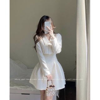 SET ĐẦM ỐNG DẠ TRẮN BỐ+ KHOÁC CROP ĐÍNH NÚT✨
