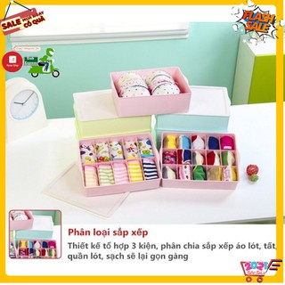 (TẶNG STICKER) Hộp đựng đồ lót, tất vớ chia ngăn bằng nhựa, có nắp đậy gọn gàng ngăn nắp xinh xắn