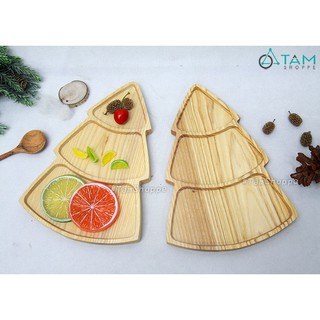 [GỖ DÀY ĐẸP] Khay gỗ hình cây thông Noel chia 03 ngăn W-KHAY-30