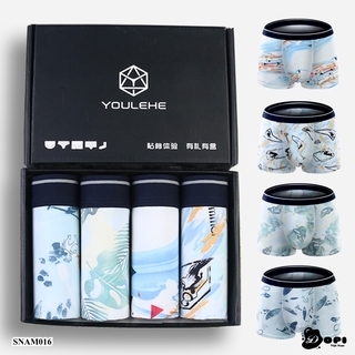 [Hộp 4 quần] Quần lót nam boxer SNAM016 sịp đùi nam cao cấp hoạ tiết độc đáo