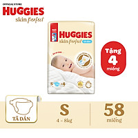 Tã/bỉm dán sơ sinh Huggies Skin Perfect S 54+4 miếng với 2 vùng thấm giảm kích ứng da