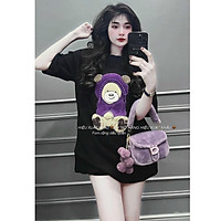 Áo phông nữ freesize cotton khô in hình gấu dáng dài giấu quần HEFS012