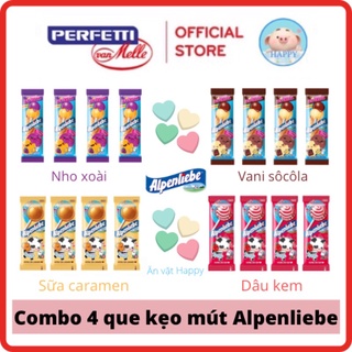 Combo 4 que kẹo mút ALPENLIEBE hương nho xoài/ vani sôcôla/ dâu kem/ sữa caramen 9g/14.5g