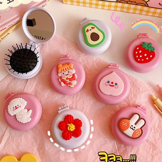 Gương mini kèm lược gấp gọn massage cầm tay bỏ túi xinh xắn