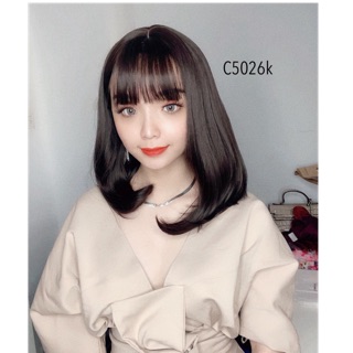Tóc giả nguyên đầu CAO CẤP, tóc lửng mái dài Hàn Quốc, đuôi uốn cụp trẻ trung – tặng lưới tóc