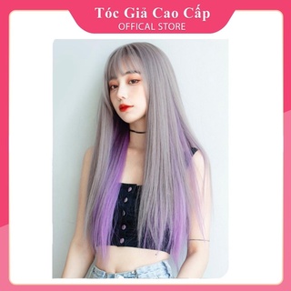 Tóc giả nữ nguyên đầu thẳng dài danh cho nữ, màu xám phối line ẩn tím, mẫu mới, tặng kèm lưới trùm tóc.