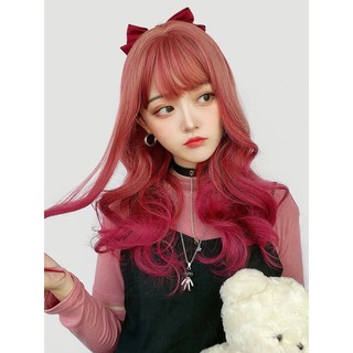 tóc giả nguyên đầu omber đỏ hồng xoăn lửng