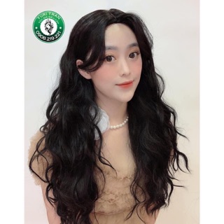 Tóc giả nguyên đầu dài CAO CẤP xoăn sóng nước mái thưa Hàn Quốc – tặng lưới tóc