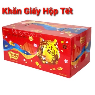 Khăn Giấy Lụa Hộp Pulppy Tết Nhâm Dần Happy New Year 140 Tờ 3 Lớp Để Phòng Khách Xe Ô Tô