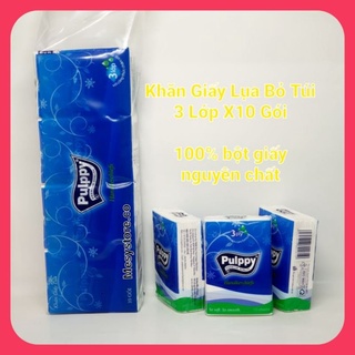 Khăn Giấy Lụa Bỏ Túi Pulppy 3 Lớp 1 Lốc 10 Gói