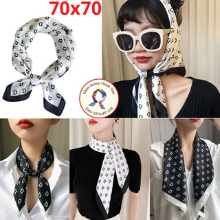 Khăn Lụa Vuông 70x70 Quàng Cổ - Quấn Tóc - Làm Áo Yếm Lụa- Họa Tiết Chữ D