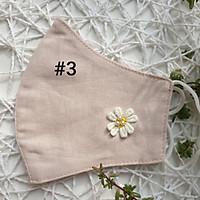 Khẩu trang linen trơn đính hoa cúc trắng ngọc trai nhân tạo 2 lớp thoáng khí DH2
