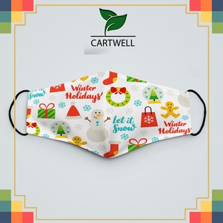Khẩu trang chống bệnh CHRISTMAS_721 CARTWELL chất liệu poly cotton 100% chống bụi in họa tiết 3d thời trang