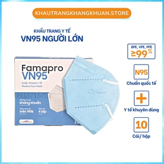 Khẩu trang FAMAPRO, khẩu trang VN95 [HÀNG XỊN], khẩu trang trắng, đen, xám, xanh -Tiêu Chuẩn Châu Âu, 4 Lớp (10 Cái/hộp)