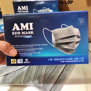 1 hộp Khẩu Trang Y Tế 4 lớp AMI Than Hoạt Tính cao cấp (50 chiếc/ 1 hộp)