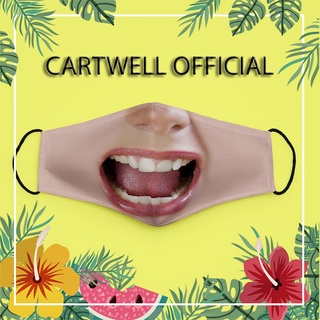 Khẩu trang in hình miệng mồm cười bựa thời trang mặt người 103 CARTWELL bảo vệ toàn diện thoáng khí dễ thở vải cotton 10